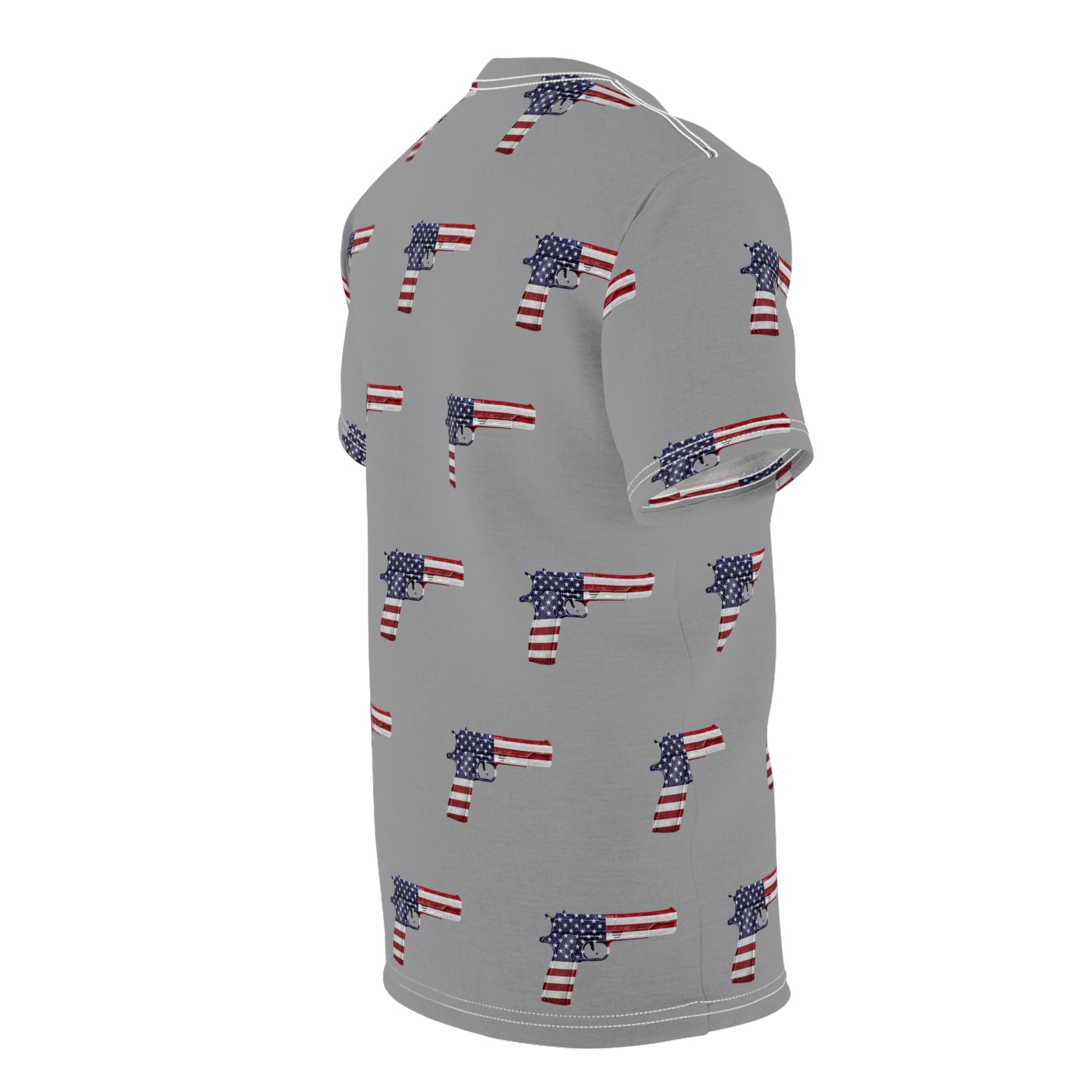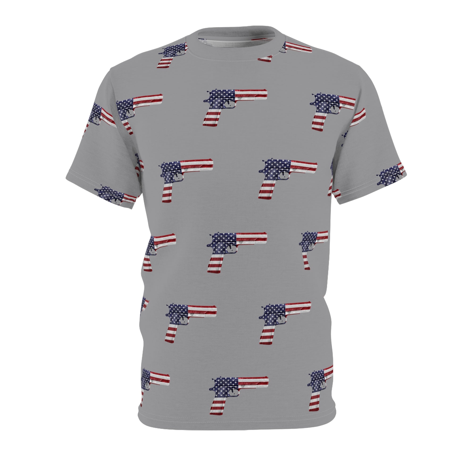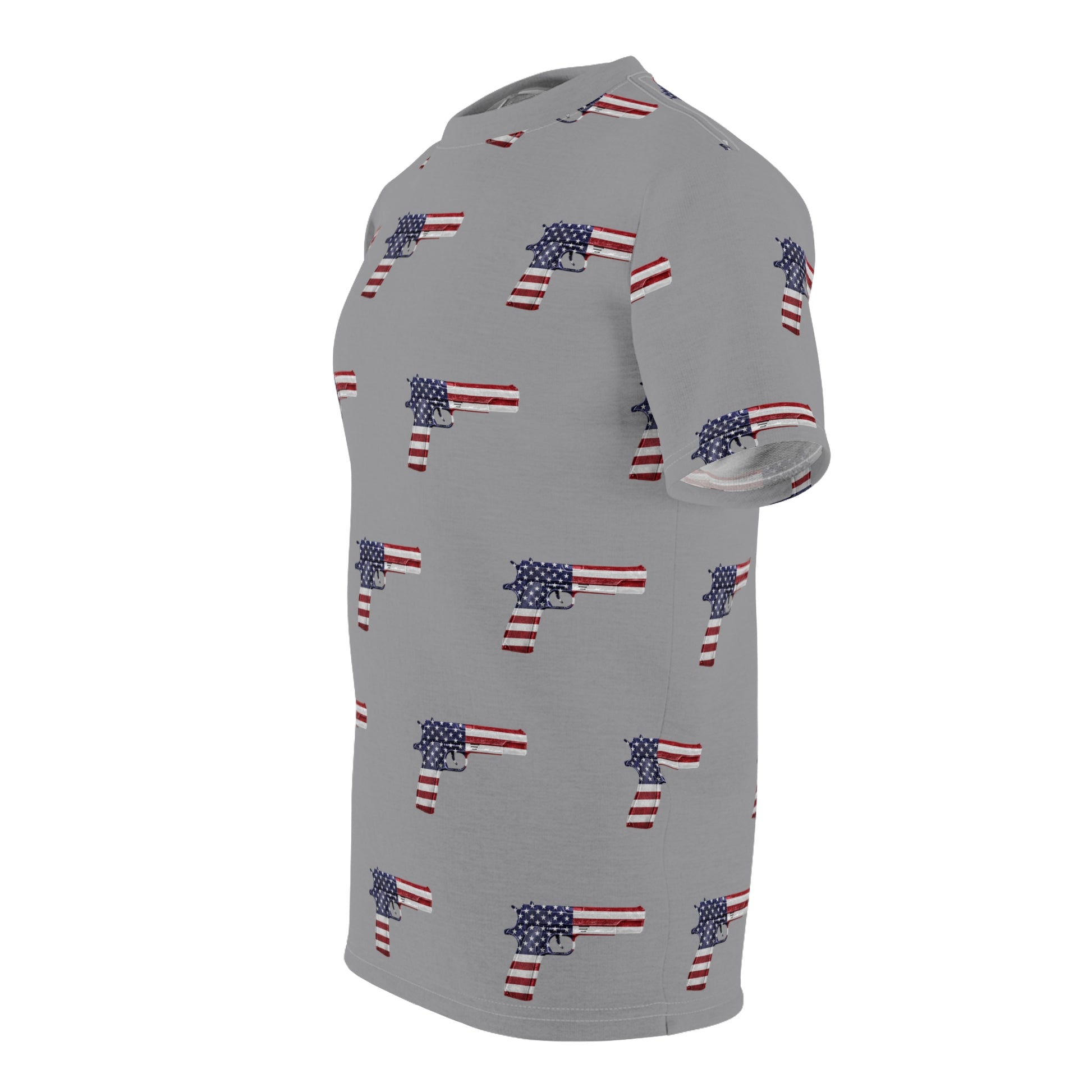 Amerikanische Flagge, Rot, Weiß und Blau, Pistolengrau, Unisex, sportliches Cut & Sew Soft-T-Shirt