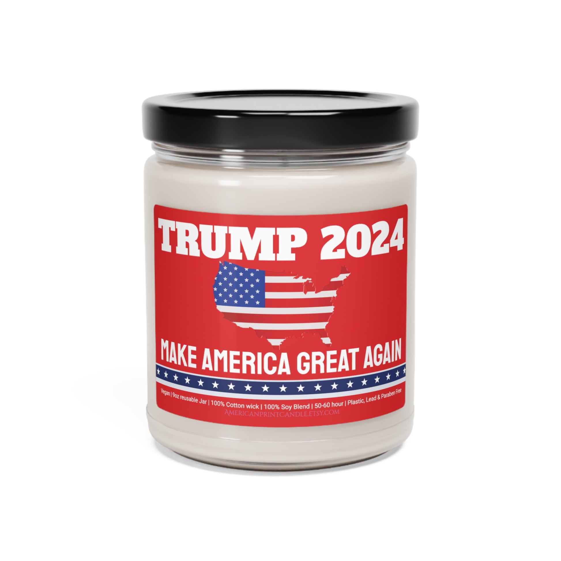 Trump 2024 Make America Great Again Scented Soy Glass Jar Candle 9oz