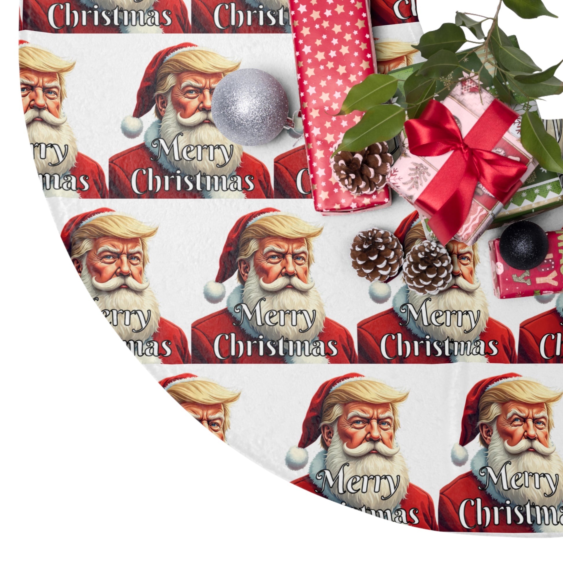 These Trump Christmas Tree Skirts are made from soft and plush fleece material, printed on one side, designed to brighten up any space during Christmas time!